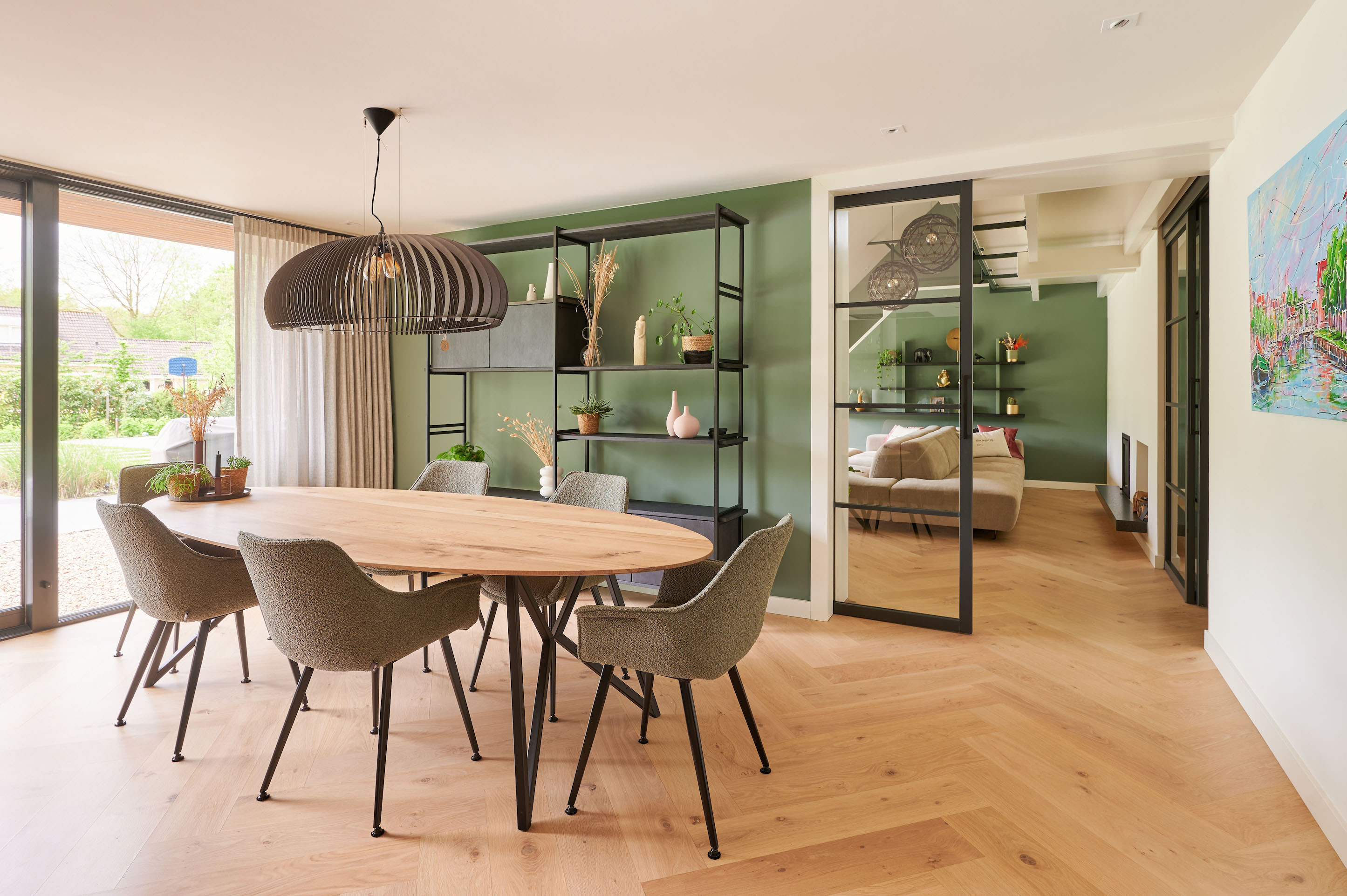Van binnen is de woning voorzien van een nieuwe warmtepomp en geheel gerestyled. Op zowel de begane grond als de verdieping zijn twee centrale assen gecreëerd, die als ruggengraat dienen voor de ontsluiting van alle ruimtes. Deze ingreep zorgt voor een open en ruimtelijk gevoel.
