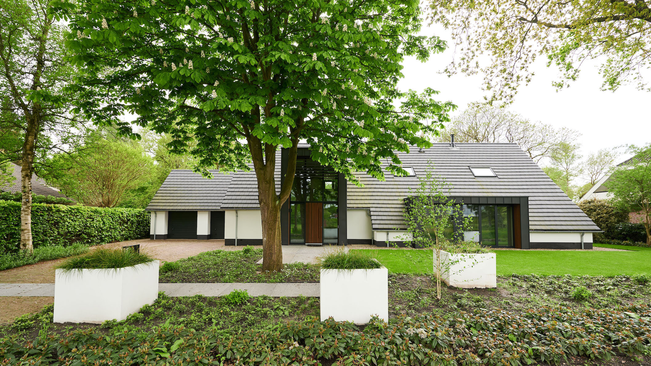 De opdrachtgever koesterde de wens om de woning te moderniseren en te hullen in een nieuw en eigentijds ontwerp. De woning is in zijn geheel voorzien van isolatie en stucwerk op de buitenwanden. Het dak is vervangen en voorzien van isolatie en nieuwe moderne dakpannen. Aan voor- en achterzijde zijn riante dakkapellen geplaatst die zijn afgewerkt met zinknoir en hout. Ze bieden licht en ruimte aan een nieuwe entreepartij en woonkeuken.